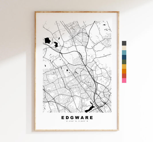 Edgware Map Print - Minimalist City Map Poster - Map Art - UK - Edgware Print - Edgware, London - Different Colours Available