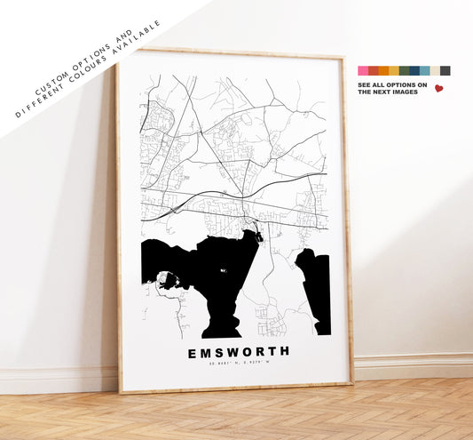 Emsworth Map Print - Minimalist City Map Poster - Map Art - UK - Emsworth Print - Emsworth Poster - Different Colours Available