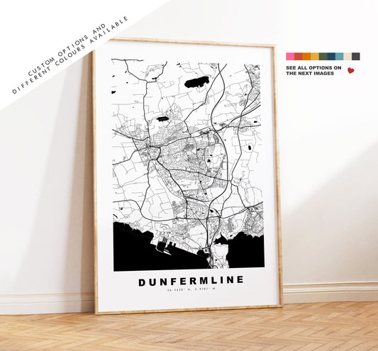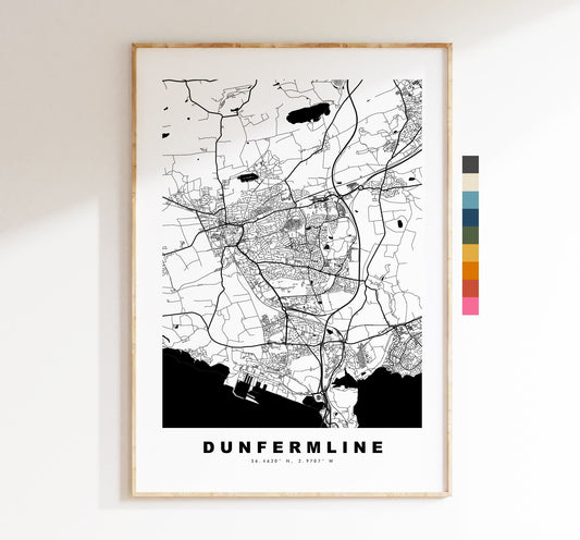 Dunfermline Map Print - Minimalist City Map Poster - Map Wall Art - Scotland - UK - Dunfermline Print - Dunfermline Poster - Different Colours