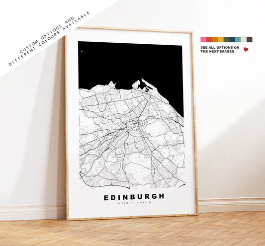 Edinburgh Map Print - Minimalist City Map Poster - Map Art - Scotland - UK - Edinburgh Print - Edinburgh Poster - Different Colours Available