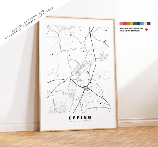 Epping Map Print - Minimalist City Map Poster - Map Art - UK - Epping Print - Epping, Essex - Different Colours Available