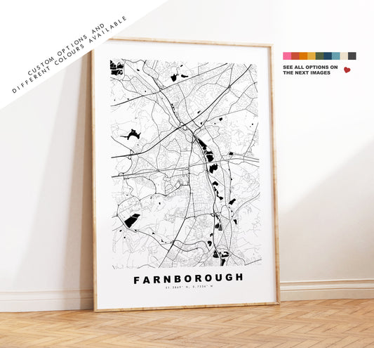 Farnborough Map Print - Minimalist City Map Poster - Map Art - UK - Farnborough Print - Farnborough Poster - Different Colours Available