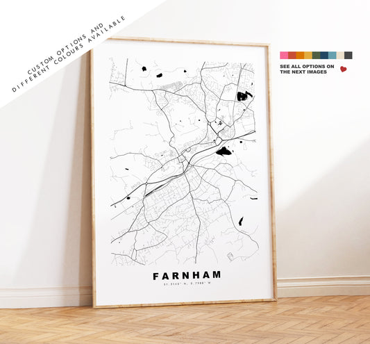 Farnham Map Print - Minimalist City Map Poster - Map Wall Art - UK - Farnham Print - Farnham Poster - Different Colours Available