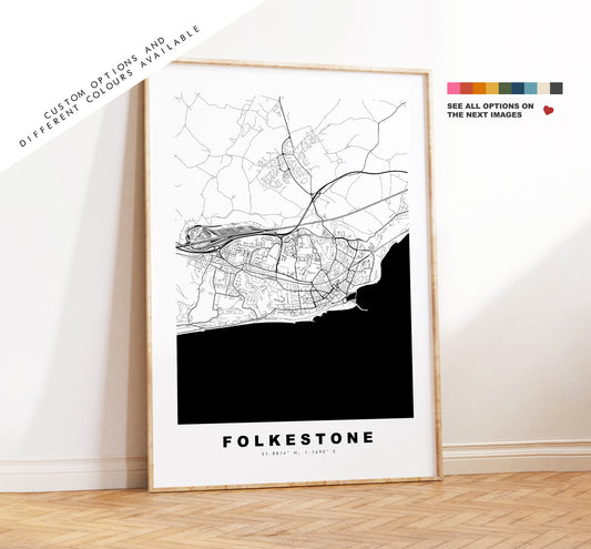 Folkestone Map Print - Minimalist City Map Poster - Map Wall Art - UK - Folkestone Print - Folkestone Poster - Different Colours Available
