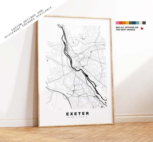 Exeter Map Print - Minimalist City Map Poster - Map Art - UK - Exeter Print - Exeter Poster - Different Colours Available