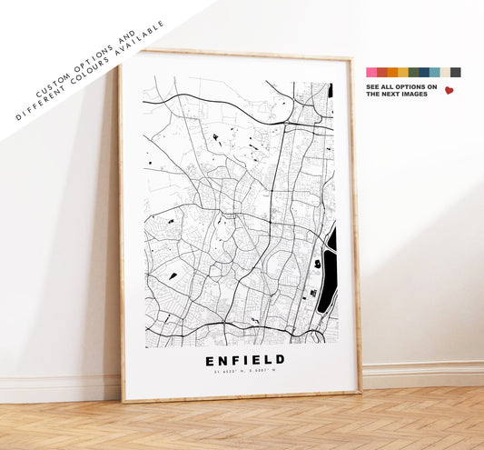 Enfield Map Print - Minimalist City Map Poster - Map Wall Art - UK - Enfield Print - Enfield Poster - Different Colours Available