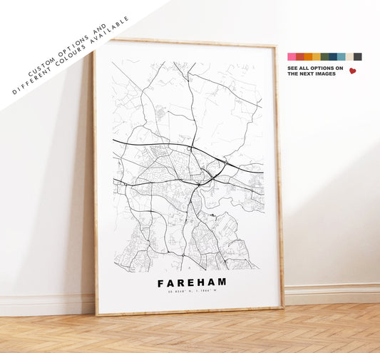 Fareham Map Print - Minimalist City Map Poster - Map Wall Art - UK - Fareham Print - Fareham Poster - Different Colours Available