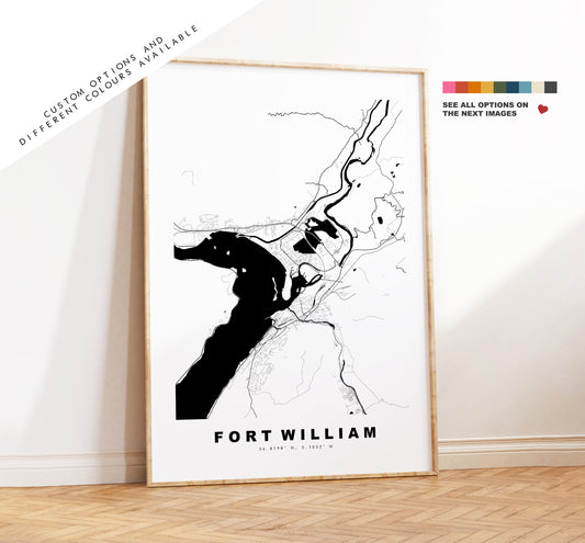 Fort William Map Print - Minimalist City Map Poster - Map Wall Art - Scotland - UK - Fort William Print - Different Colours Available