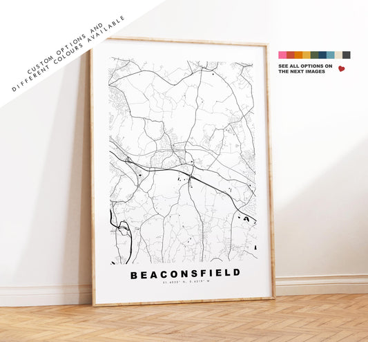Beaconsfield Map Print - Minimalist City Map Poster - Map Art - UK - Beaconsfield Print -Buckinghamshire - Different Colours Available