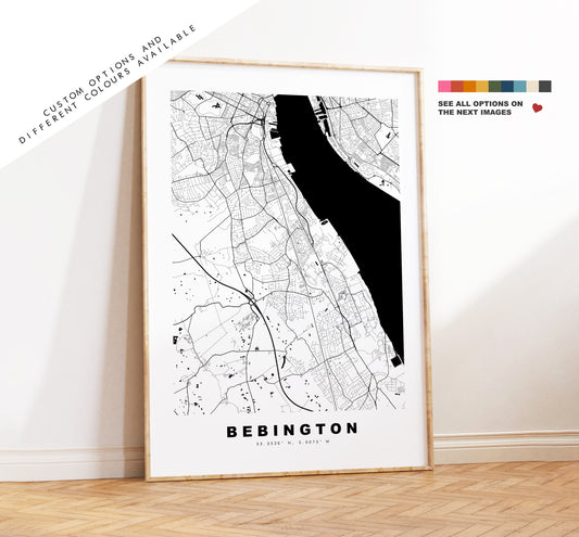 Bebington Map Print - Minimalist City Map Poster - Map Art - UK - Bebington Print - Bebington Poster - Different Colours Available