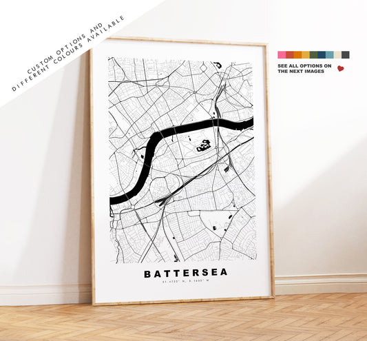 Battersea Map Print - Minimalist City Map Poster - Map Wall Art - UK - Battersea Print - Battersea Poster - Different Colours Available