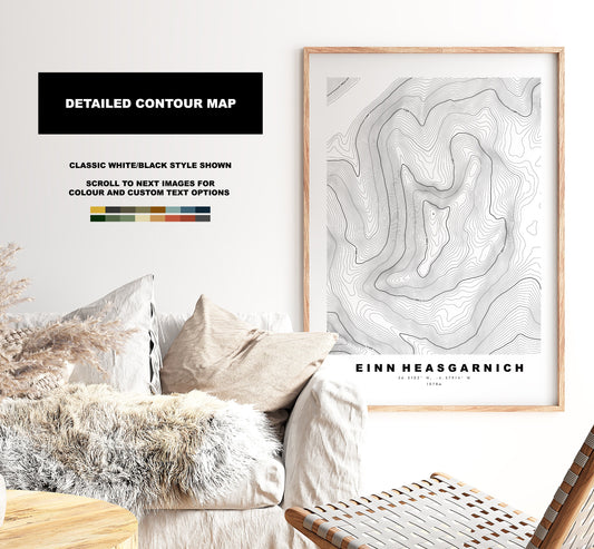 Bienn Heasgarnich Print - Contour Map - Bienn Heasgarnich Poster - Scotland - Topographic Map - Print - Wall Art - Beinn Sheasgarnaich Map