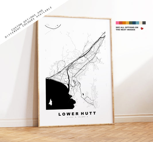Lower Hutt Map Print - City Map Poster - Map Wall Art - New Zealand City Maps - Lower Hutt Print - Lower Hutt Poster - Minimalist City Map