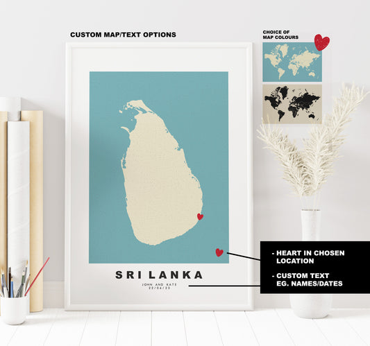 Sri Lanka Map Print - Personalised Map Gift - Framed or Canvas Options Available - Custom Text Options - Personalised Gift - Asia