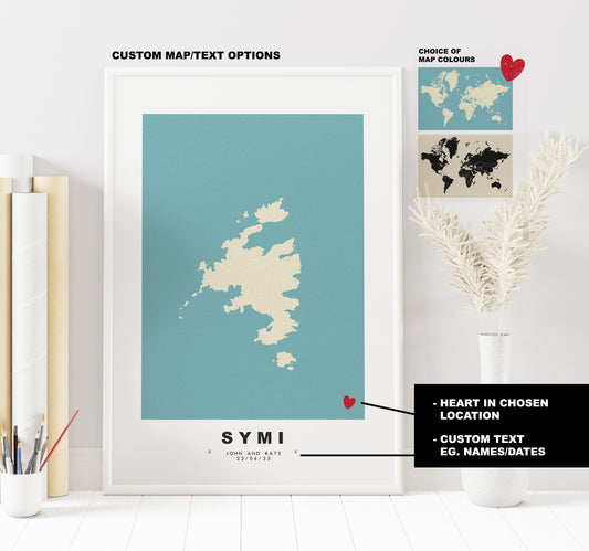Symi Map Print - Personalised Map Gift - Framed or Canvas Options Available - Custom Text Options - Personalised Gift - Greece & Islands