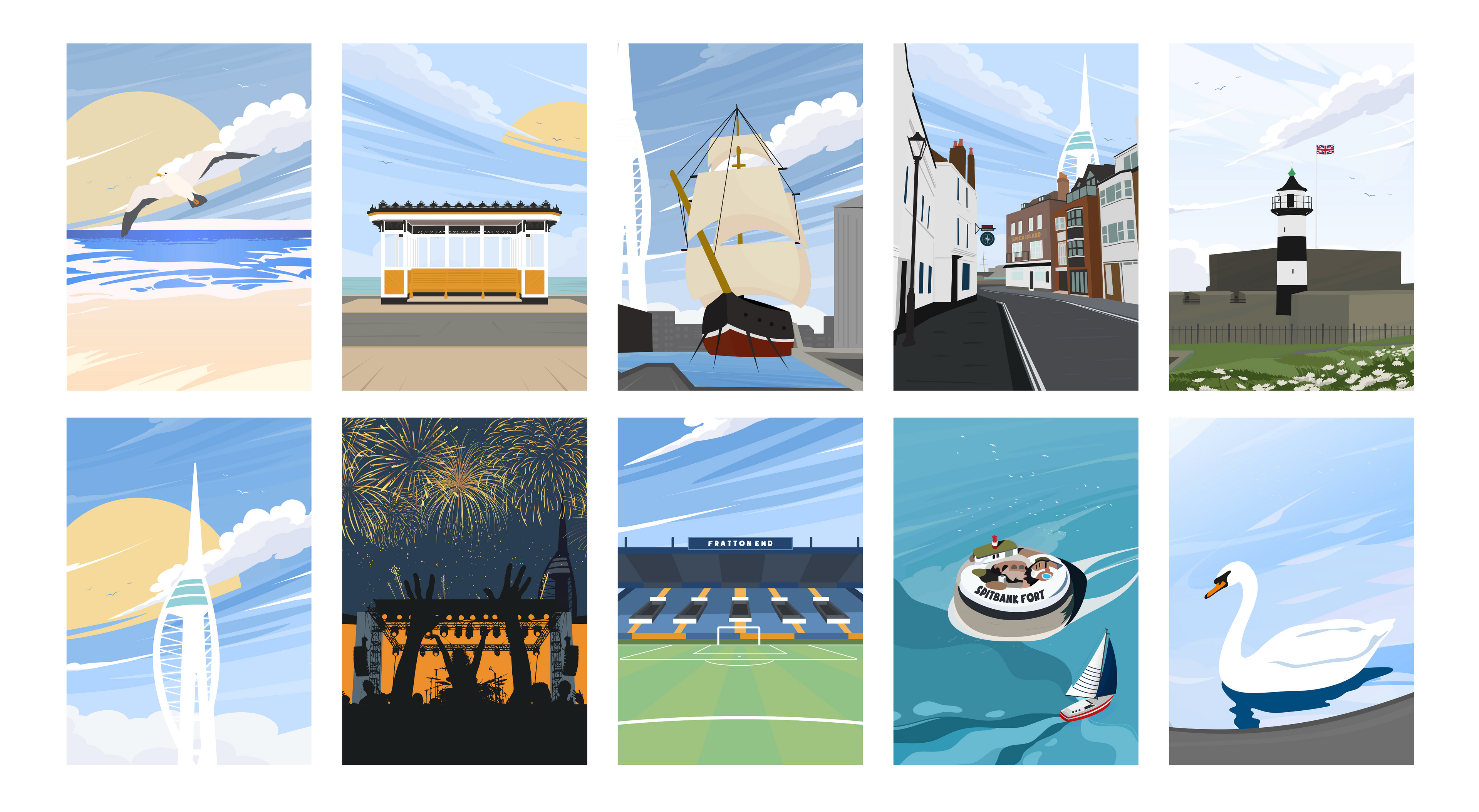 Portsmouth Greeting Card - Portsmouth and Southsea Cards (Travel Designs) - Blank Inside or Include Message - Envelope Included