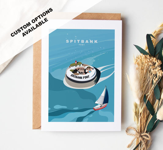 Spitbank Fort Greeting Card - Portsmouth and Southsea Cards (Travel Designs) - Blank Inside or Include Message - Envelope Included