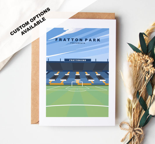 Fratton Park Greeting Card - Portsmouth and Southsea Cards (Travel Designs) - Blank Inside or Include Message - Envelope Included