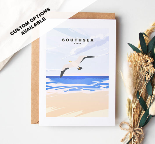 Southsea Beach Greeting Card - Portsmouth and Southsea Cards (Travel Designs) - Blank Inside or Include Message - Envelope Included