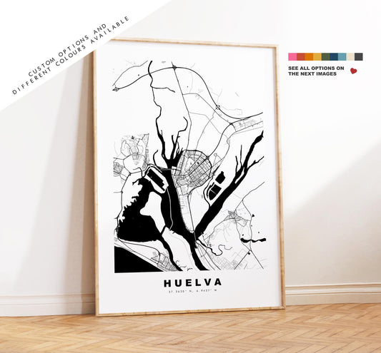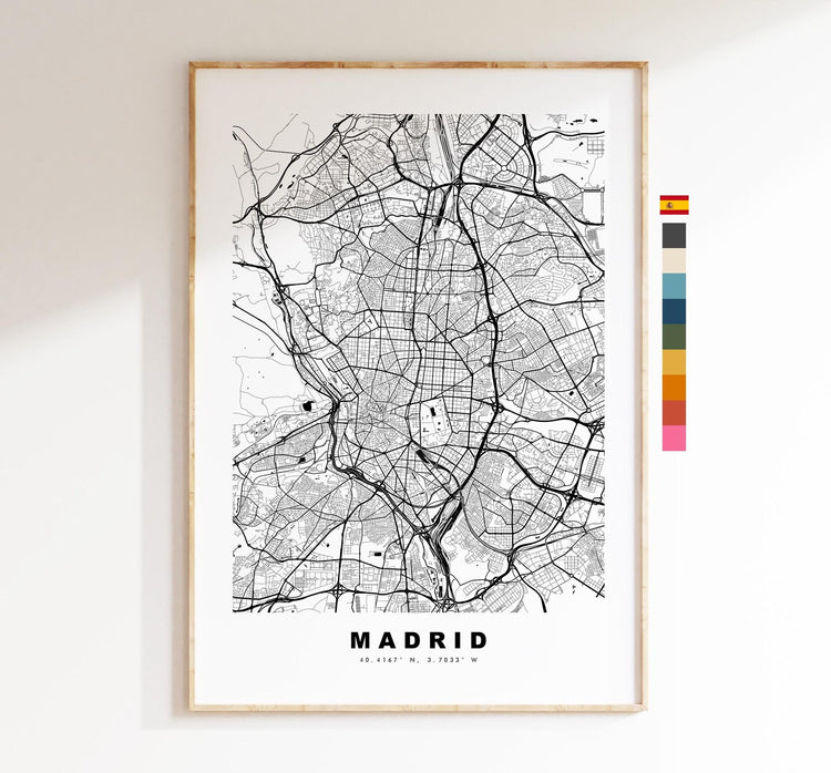 Spanish city and town maps in a minimalist black/white style or choose from a range of colours. These maps look great as a feature piece or as part of a set over a statement piece of furniture. You can personalise these print by adding up to two lines of custom text beneath the city title, or by adding a heart over a location or address.