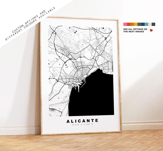 Alicante Map Print - City Map Poster - Map Art - Map Wall Art - Spain City Maps - Alicante Print - Alicante Poster - Minimalist City Map