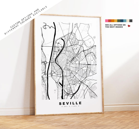 Seville Map Print - City Map Poster - Map Art - Map Wall Art - Spain City Maps - Seville Print - Seville Poster - Minimalist City Map