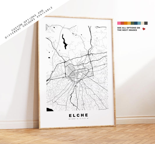 Elche Map Print - City Map Poster - Map Art - Map Wall Art - Spain City Maps - Elche Print - Elche Poster - Minimalist City Map