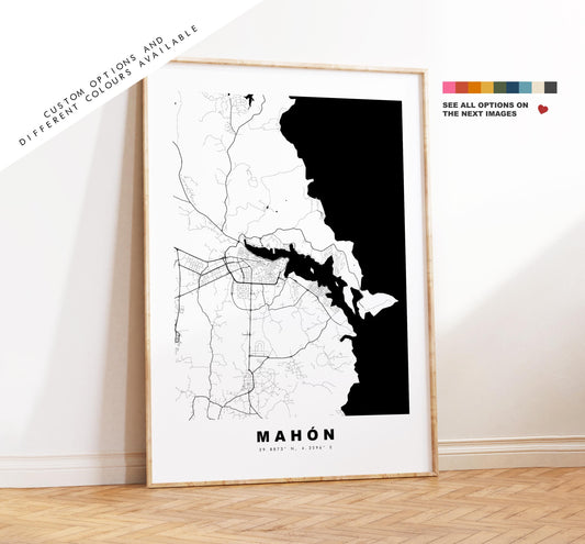 Mahon Map Print - City Map Poster - Map Art - Map Wall Art - Spain City Maps - Print - Mahon - Menorca - Minimalist City Map