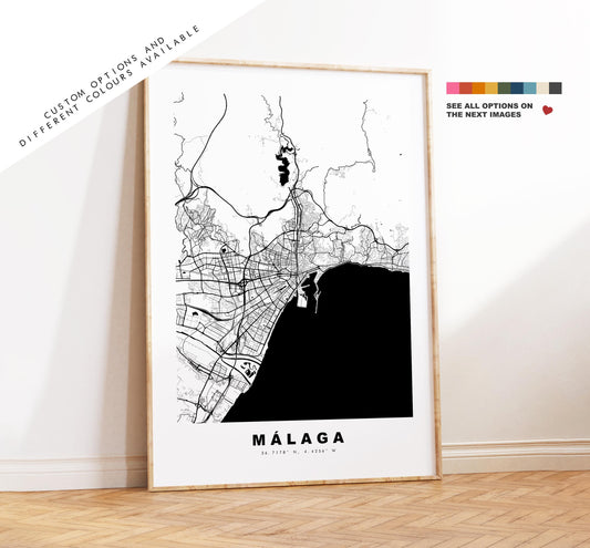 Malaga Map Print - City Map Poster - Map Art - Map Wall Art - Spain City Maps - Malaga Print - Malaga Poster - Minimalist City Map
