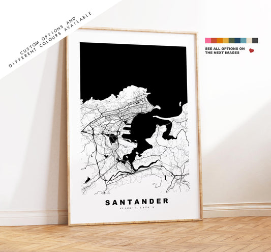 Santander Map Print - City Map Poster - Map Art - Map Wall Art - Spain City Maps - Santander Print - Santander Poster - Minimalist City Map