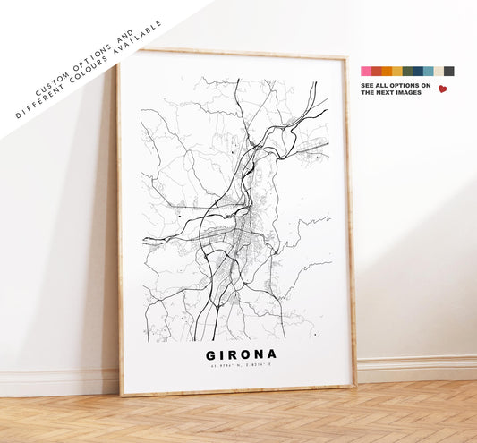 Girona Map Print - City Map Poster - Map Art - Map Wall Art - Spain City Maps - Girona Print - Girona Poster - Minimalist City Map