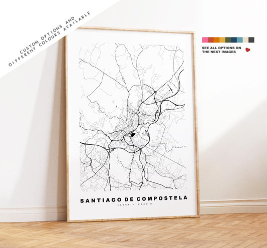 Santiago de Compostela Map Print - City Map Poster - Map Art - Map Wall Art - Spain City Maps - Print - Poster - Minimalist City Map