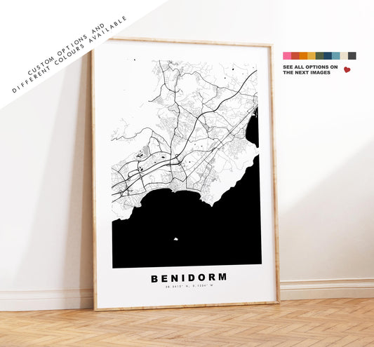 Benidorm Map Print - City Map Poster - Map Art - Map Wall Art - Spain City Maps - Benidorm Print - Benidorm Poster - Minimalist City Map