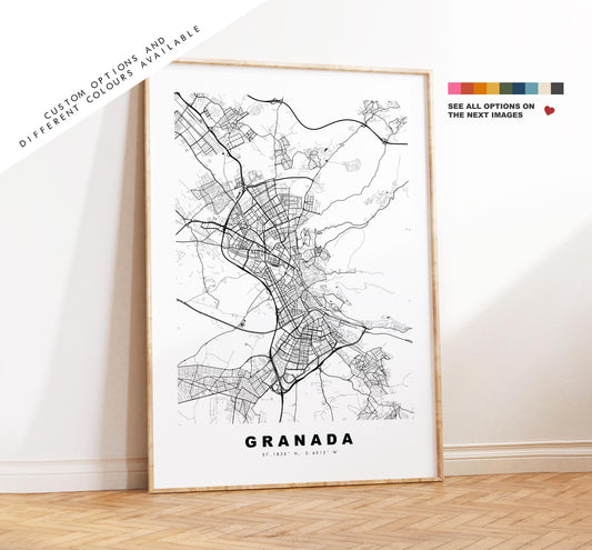 Granada Map Print - City Map Poster - Map Art - Map Wall Art - Spain City Maps - Granada Print - Granada Poster - Minimalist City Map