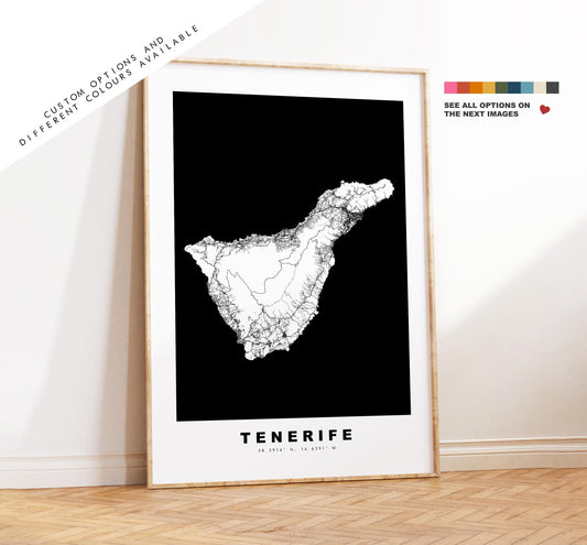 Tenerife Map Print - Map Poster - Map Art - Map Wall Art - Spain Maps - Tenerife Print - Canary Islands Poster - Minimalist Map