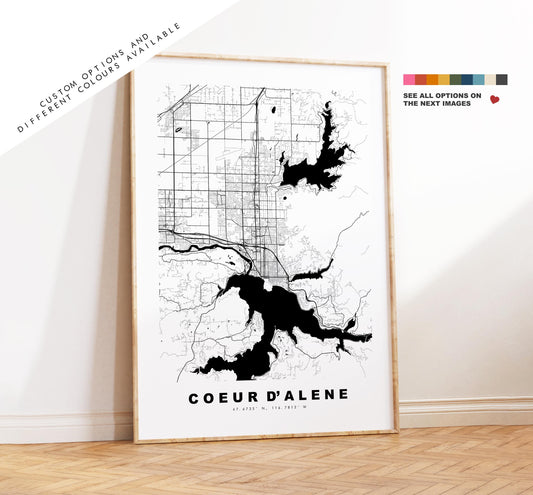 Couer d'Alene Map Print - City Map Poster - Map Art - USA City Maps - Couer d'Alene Print - Poster - Minimalist City Map - Idaho