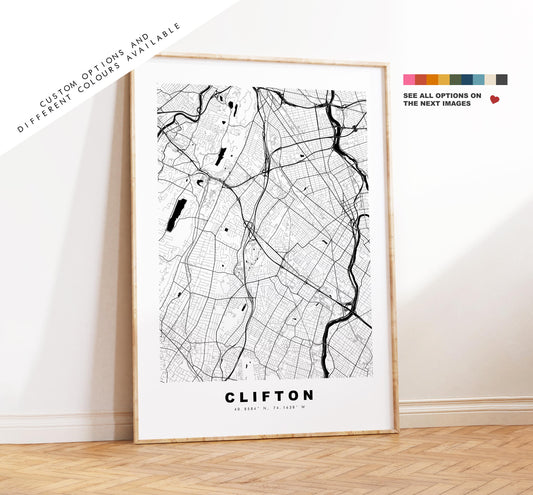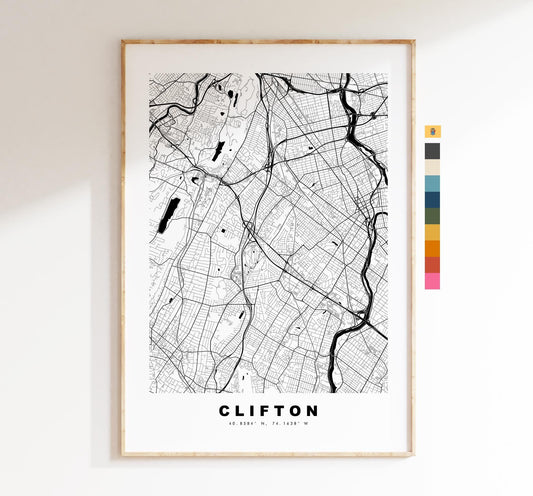 Clifton Map Print (New Jersey) - City Map Poster - Map Art - USA City Maps - Clifton Print - Poster - Minimalist City Map - New Jersey