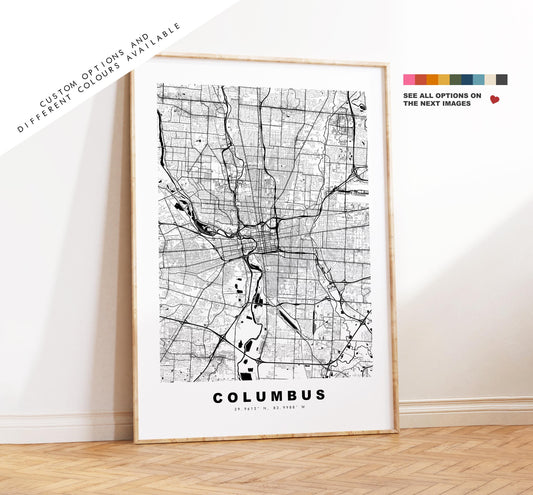 Columbus Map Print - City Map Poster - Map Art - USA City Maps - Columbus Print - Columbus Poster - Minimalist City Map - Ohio