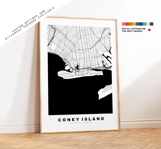 Coney Island Map Print - City Map Poster - Map Art - USA City Maps - Coney Island Print - Poster - Minimalist City Map - New York