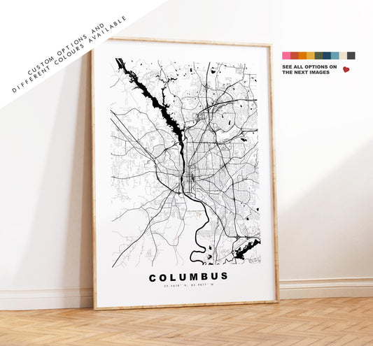Columbus Map Print (Georgia) - City Map Poster - Map Art - USA City Maps - Columbus Print - Poster - Minimalist City Map - Georgia