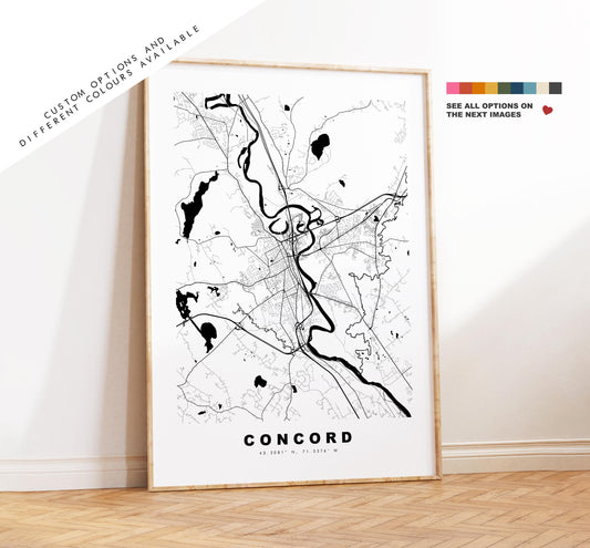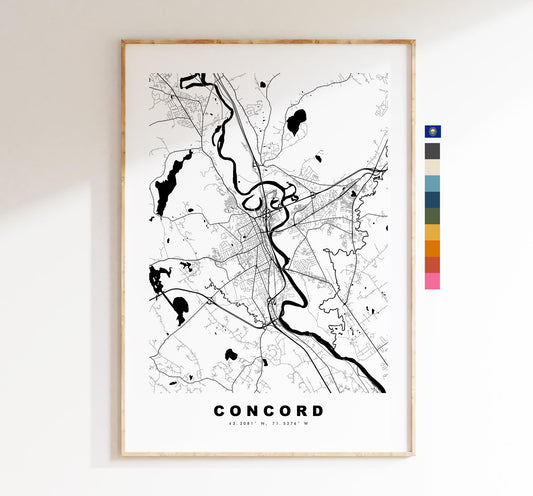 Concord Map Print - City Map Poster - Map Art - USA City Maps - Concord Print - Concord Poster - Minimalist City Map - New Hampshire