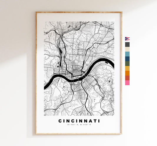 Cincinnati Map Print - City Map Poster - Map Art - USA City Maps - Cincinnati Print - Cincinnati Poster - Minimalist City Map - Ohio