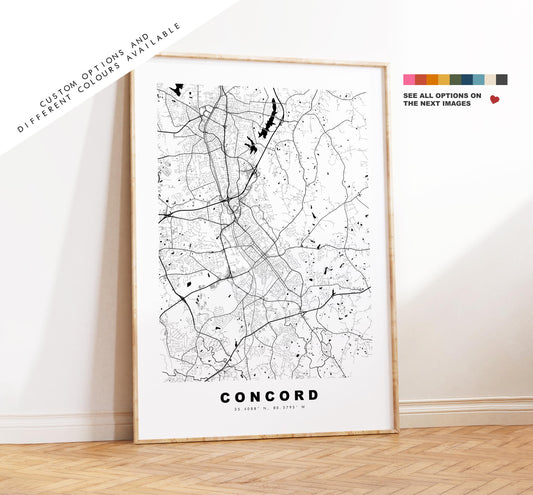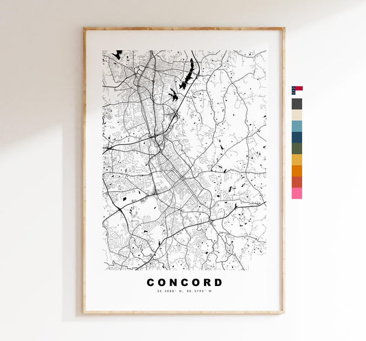 Concord Map Print (North Carolina) - City Map Poster - Map Art - USA City Maps - Print - Poster - Minimalist City Map - North Carolina