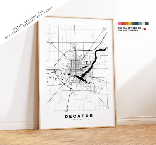 Decatur Map Print - City Map Poster - Map Art - USA City Maps - Decatur Print - Decatur Poster - Minimalist City Map - Illinois