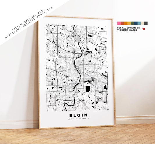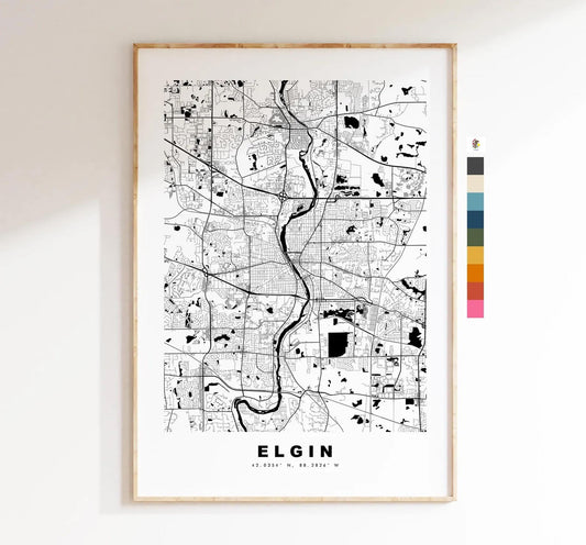 Elgin Map Print - City Map Poster - Map Art - USA City Maps - Elgin Print - Elgin Poster - Minimalist City Map - Illinois