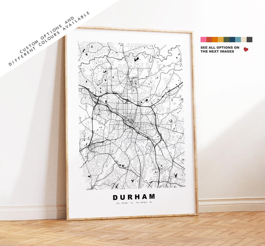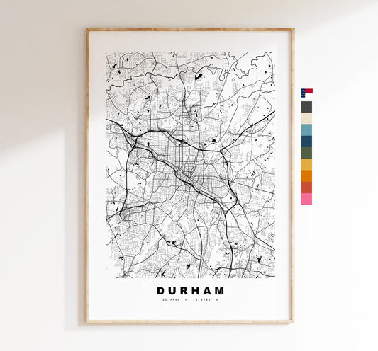 Durham Map Print (North Carolina) - City Map Poster - Map Art - USA City Maps - Print - Poster - Minimalist City Map - North Carolina