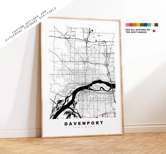 Davenport Map Print - City Map Poster - Map Art - USA City Maps - Davenport Print - Davenport Poster - Minimalist City Map - Iowa