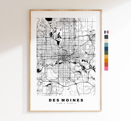 Des Moines Map Print - City Map Poster - Map Art - USA City Maps - Des Moines Print - Des Moines Poster - Minimalist City Map - Iowa