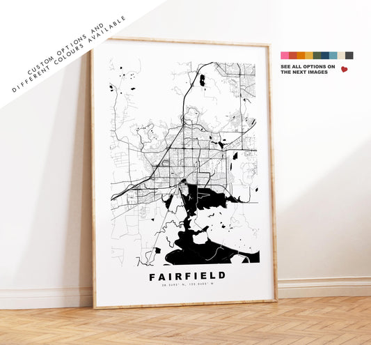 Fairfield Map Print - City Map Poster - Map Art - USA City Maps - Fairfield Print - Fairfield Poster - Minimalist City Map - California