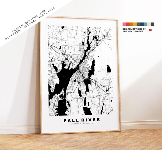 Fall River Map Print - City Map Poster - Map Art - USA City Maps - Fall River Print - Poster - Minimalist City Map - Massachusetts